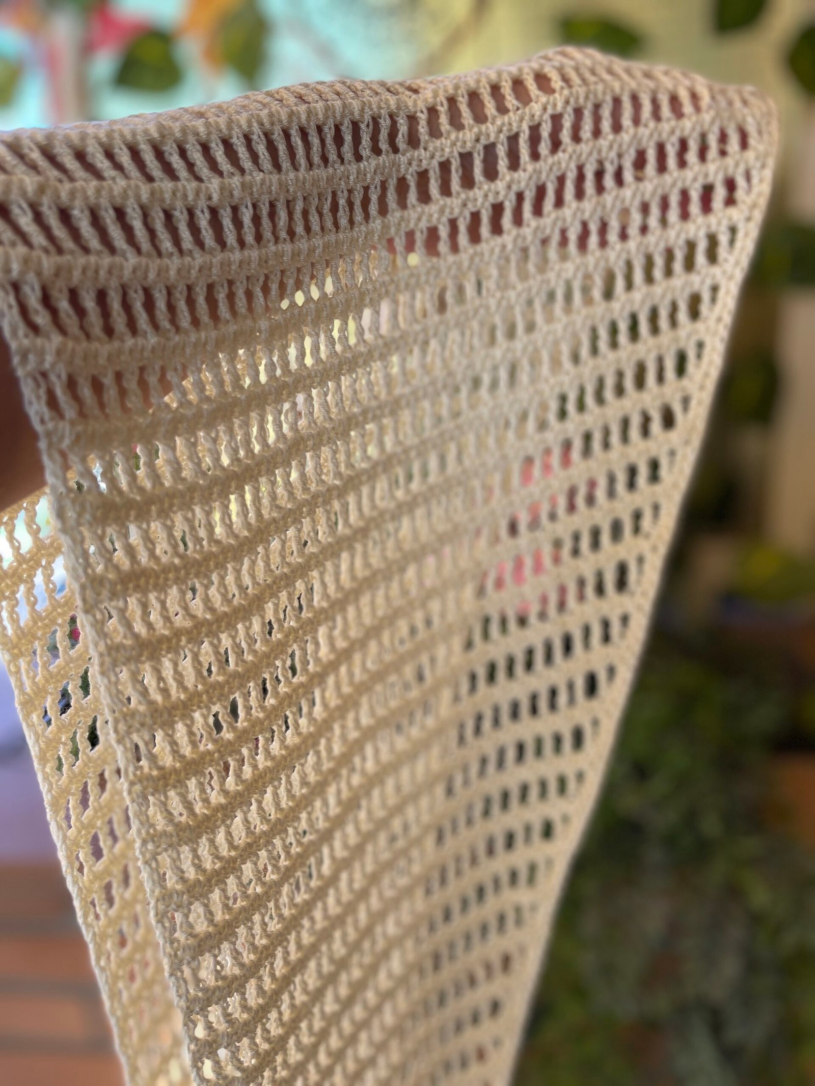 A tejer un chal triangular a crochet, empezando por una punta y terminando en la otra.